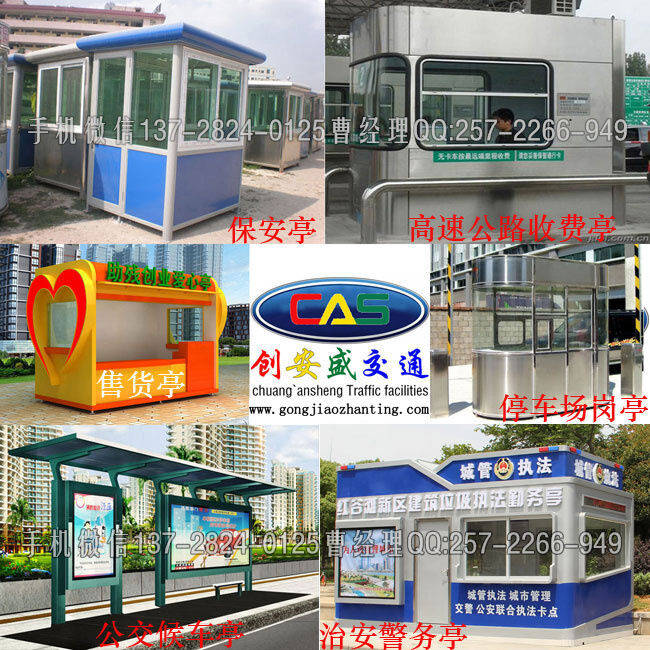 生产公交候车亭,岗亭,保安亭,高速公路收费亭,治安警务亭,售货亭,手动栏杆机,报刊亭,公交站台,交通安全劝导站,移动厕所,义工亭定做热线137-2824-0125(微信同号)曹经理QQ:257-2266-949急单请加拨132-6881-4669东莞创安盛交通温馨提示:本产品属于非标定做产品,价格依据图纸核算,如需准确的报价或者预算,请拨打电话直接咨询。感谢大家的关注与合作!期待为大家带来更多、更优质的产品、更完善的服务!如需产品样式选型,请参考工厂网站。温馨提示:由于本公司所有产品均由规格、配置、款式计算价格,所以一律无法在线成交,准确的价格请直接来电或者在线咨询QQ。您要的“性价比高、优质、工期及时、全国年保、专业、周全、工艺精美”一直是我们的标准。注意:站岗亭为非标定做产品,在线无法订购,需要与厂家沟通好“款式,规格、配置、运输”等等方能下单。请勿直接拍。感谢关注,合作,谢谢!