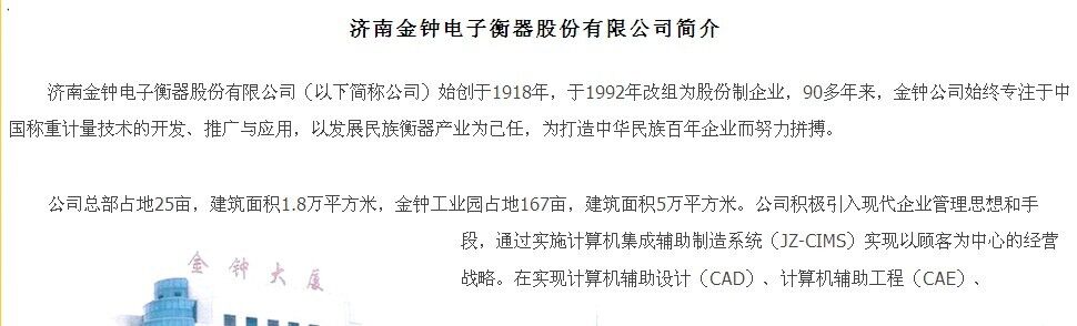 济南金钟电子衡器股份有限公司公司简介,关于济南金钟电子衡器股份有限公司