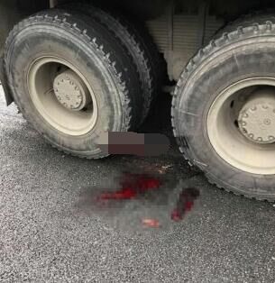 记者看到,水泥搅拌车右后轮处有一大摊血,边上掉着一块十多厘米长的骨头。水泥搅拌车车后还有一条七八米长的血迹。