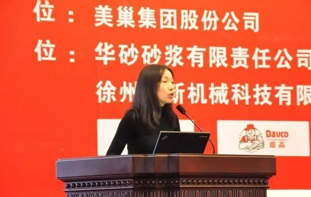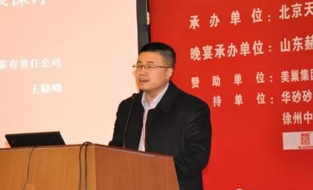 华砂砂浆有限责任公司王晓峰做“砂浆系统化服务在工程领域的运行优势”;