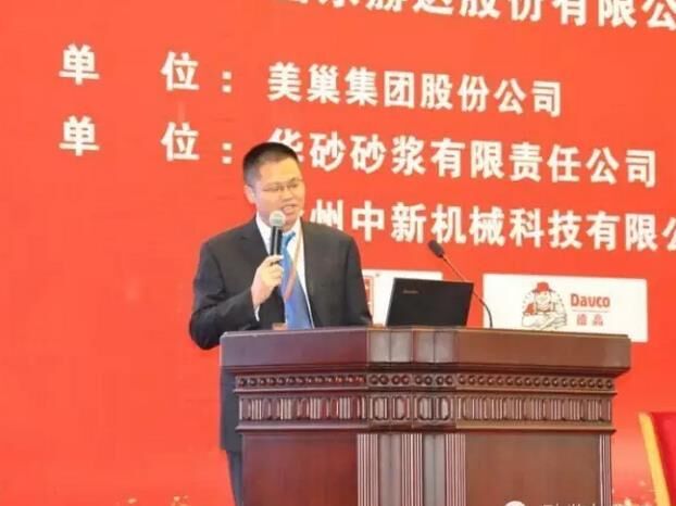 美巢集团股份公司李永鑫做“新拌砂浆的流变学研究进展”的讲话;