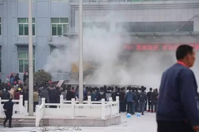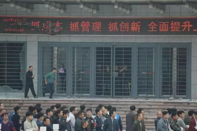 3月8日凌晨,袖缠红护身符布条、手戴白手套,600多人拿着棍棒聚集在济南104国道山东山水水泥集团有限公司总部门口,强行冲进大门,对办公楼的几个门进行“砸打”,还从厂区强行把装载机开上办公楼门口回廊对办公楼大门进行蛮击。此时,集团办公楼里山水高管和员工只有20余人,多人在防卫中被外边投掷的石块砸中受重伤,躺在医院。