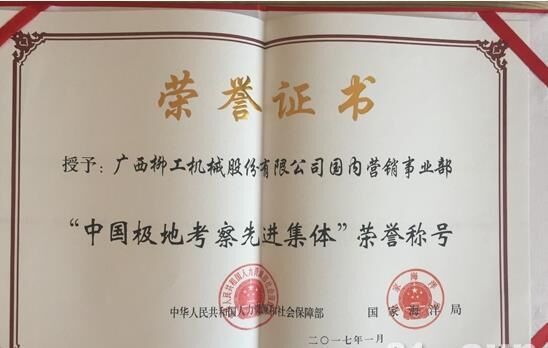 2017年4月24日,北京 — 今天,由人力资源和社会保障部、国家海洋局联合表彰的中国极地考察先进集体和先进个人活动在北京举行,柳工荣获“中国极地考察先进集体荣誉”。