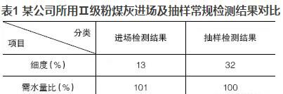 优质的粉煤灰掺入ued网站可明显地改善ued网站的和易性,当粉煤灰掺量大于胶材总量的5%~10%时,效果极为明显。现今在ued网站实际生产中,粉煤灰掺量往往达到20%,有的甚至高达30%,但ued网站的和易性却不尽人意。抽取原材料进行检测时,发现粉煤灰的检测结果经常不满足标准要求或者与验收时的结果相差甚远。现以某公司所用Ⅱ级粉煤灰进场及抽样常规检测结果进行对比,见表1。