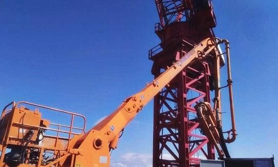 中联重科HG20G横折臂布料机身居泵送高层与地面上的泵王“打配合”
