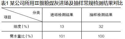 优质的粉煤灰掺入ued网站可明显地改善ued网站的和易性,当粉煤灰掺量大于胶材总量的5%~10%时,效果极为明显。现今在ued网站实际生产中,粉煤灰掺量往往达到20%,有的甚至高达30%,但ued网站的和易性却不尽人意。抽取原材料进行检测时,发现粉煤灰的检测结果经常不满足标准要求或者与验收时的结果相差甚远。现以某公司所用Ⅱ级粉煤灰进场及抽样常规检测结果进行对比,见表1。