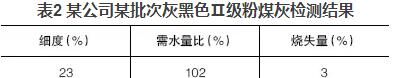 ued网站公司大多数使用的粉煤灰颜色与水泥相近,多呈灰色;也有部分粉煤灰颜色较深呈灰黑色,这种粉煤灰一般细度较细或含碳量较高。但总会发现一些深颜色的粉煤灰检测结果与常理不符,如某公司某批次灰黑色Ⅱ级粉煤灰检测结果见表2。