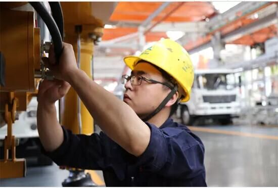 年轻,是泵车装配班组最大的特色,目前整个班组人员编制共36人,平均年龄28岁。其中最年轻的22岁,刚从大学毕业。虽然整体年龄不大,但班里近一半工人已在这里工作五年以上,工作经验丰富。年轻,代表着活力,也代表着学习能力强,在班长蒲明俊和其他技术骨干的带领下,泵车装配班工人全部都获评中级职称,其中19人获评高级职称。18号厂房里,既年轻又稳重的他们,已经成为技术工人的生力军和行业创新的引领者。
