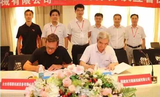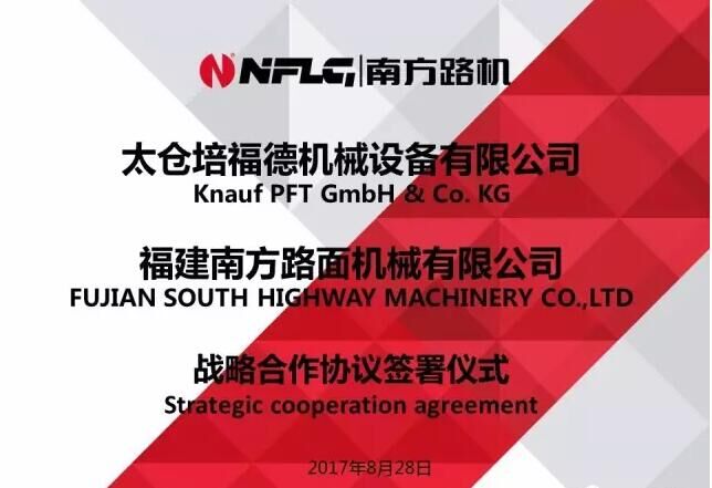 8月28日,太仓培福德机械设备有限公司(以下简称“培福德”)与福建南方路面机械有限公司(以下简称“南方路机”)正式签订战略合作协议,就联手打造从骨料制砂到干混砂浆搅拌,再到机械化施工的全流程服务,确立了双方的战略合作关系。