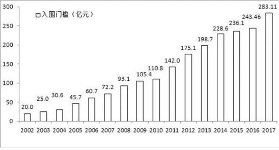 数据显示,2017中国企业500强实现营业收入64万亿元,较上年增长7.64%,扭转了增速连续两年下滑的态势。入围门槛为283.11亿元,较上年大幅提高39.65亿元,提高幅度为自2002年发布中国企业500强以来最高。