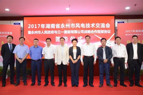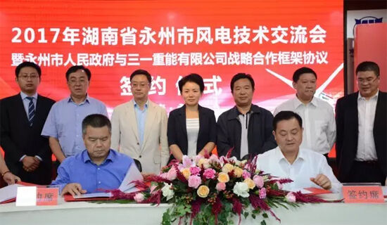 10月11日上午,三一重能与永州市人民政府签订了战略合作框架协议,双方将在风电开发、风电项目投资和装备制造等方面展开深度合作。签约仪式前,还召开了永州市风电技术交流会,交流风电新技术,对接三一重能,共商永州风电产业发展大计。