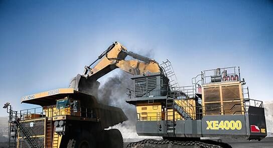 徐工国内首台400吨级液压挖掘机和徐工巨型矿用自卸车在山西平朔煤矿施工