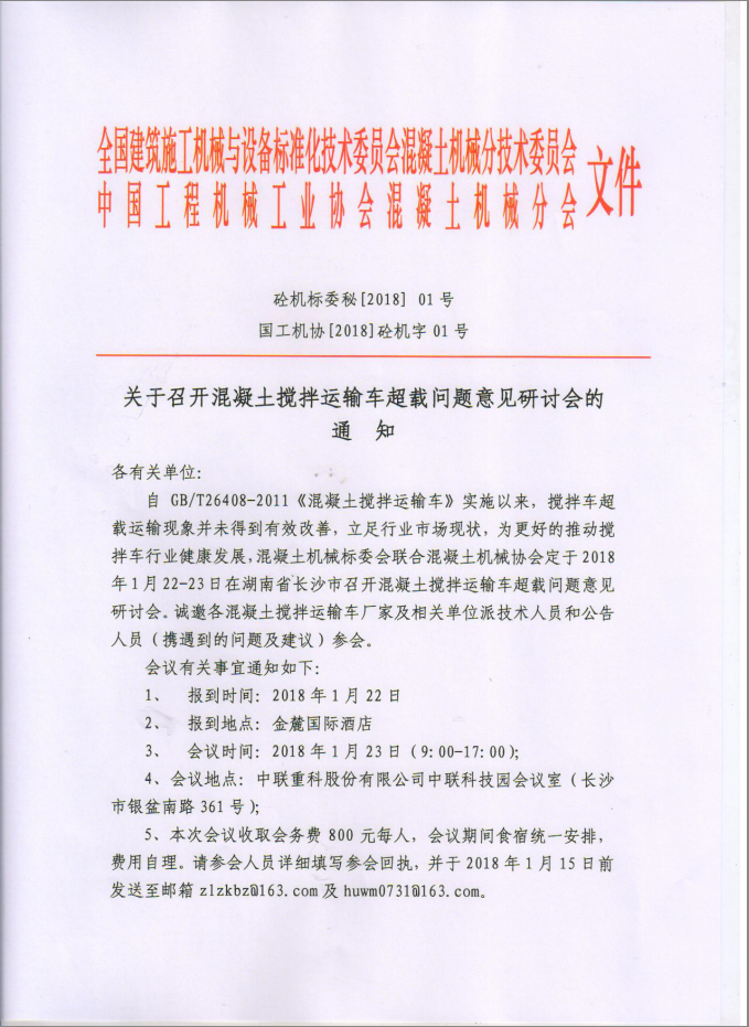 关于召开ued网站搅拌运输车超载问题意见研讨会的通知