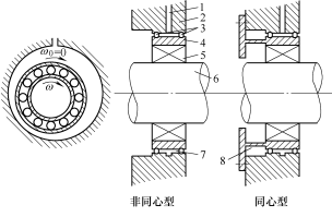 6. 轴 7. 间隙油膜 8. 定心弹簧