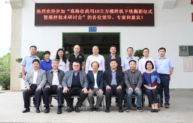 2018年4月18日,珠海仕高玛公司10立方搅拌机下线揭彩仪式暨搅拌技术研讨会在珠海仕高玛公司举行,中国工程机械协会ued网站机械分会符忠轩会长、长安大学冯忠绪教授、赵利军博士、广东长大公路工程公司杨东来总工程师、河南万里路桥李冠峰总工程师、许昌德通特种ued网站公司孟超总经理等领导、专家和嘉宾应邀出席仪式和研讨会,珠海仕高玛公司股东黄志辉先生、意大利SICOMA公司董事长Mr. Galletti、总工程师Marco、珠海仕高玛公司总经理郗俊峰先生、财务总监唐志敏女士及公司技术研发团队、生产团队、销售团队、售后团队参加本次活动。