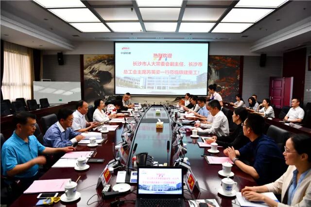本次座谈会由长沙市总工会党组副书记、副主席匡涛涛主持,市总工会常委、秘书长肖胜军,市总工会常委、经济技术部部长张孟,以及经开区总工会副主席陈建辉等领导参与调研,铁建重工部分在家领导和职工代表参与上述活动。