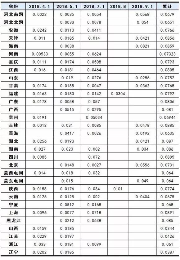 我国各省、市一般工商业电价降价情况