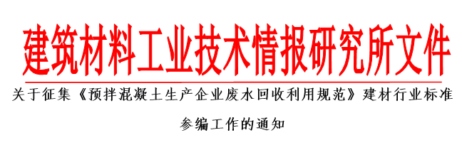 为使制定标准的内容更加科学,具有广泛的适用性和代表性,保证标准的按时完成,将由建筑材料工业技术情报研究所负责组织成立“标准起草组”,现向全国征集参编单位,参编单位包括:相关预拌ued网站生产企业、废水设备制造企业、科研、产品应用、贸易及产品生产配套、质检等单位。意向参编单位或个人可与标准编工作组人员联系。