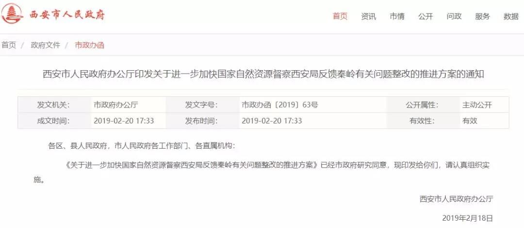 近日,陕西省西安市发布《关于进一步加快国家自然资源督察西安局反馈秦岭有关问题整改的推进方案》。