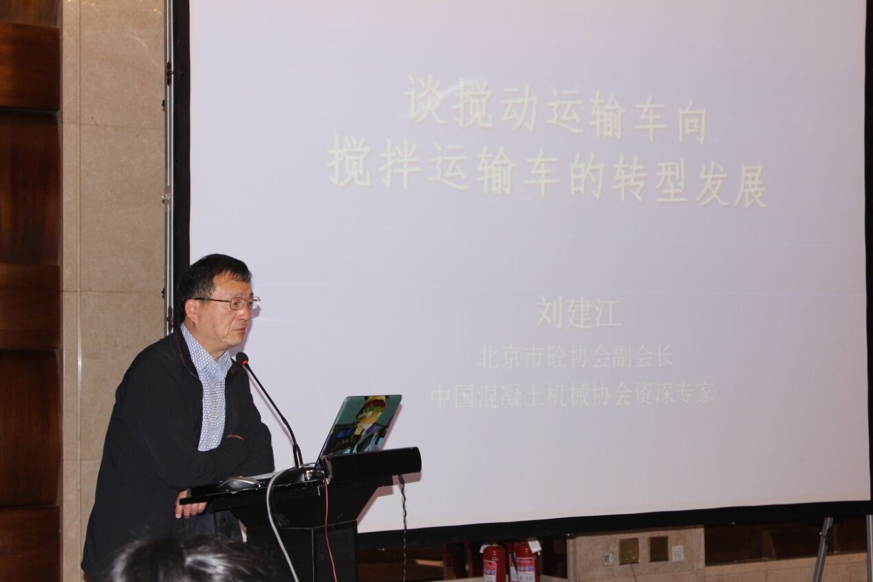北京市砼协会副会长、中国ued网站机械协会资深专家刘建江先生作关于《谈搅动运输车向搅拌运输车的转型发展》的主题演讲,提出搅拌车发展的方向。首先是新能源的应用,其次是产品制造工艺的创新,加强功能设计,弥补搅拌运输过程中的产品匀致性以及罐体可视化和远程控制,从产品使用者的角度提出了自己的一些建议,让产品生产单位也深受启发;