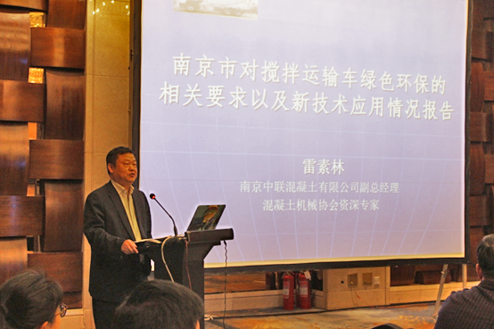 南京中联ued网站有限公司副总经理、ued网站机械协会资深专家雷素林先生作了《南京市对搅拌运输车绿色环保的相关要求以及新技术应用情况报告》的主题演讲,从南京环保和搅拌车治理过程中所遇到的问题提出了搅拌车在绿色环保和新技术应用方面的以下几点建议: