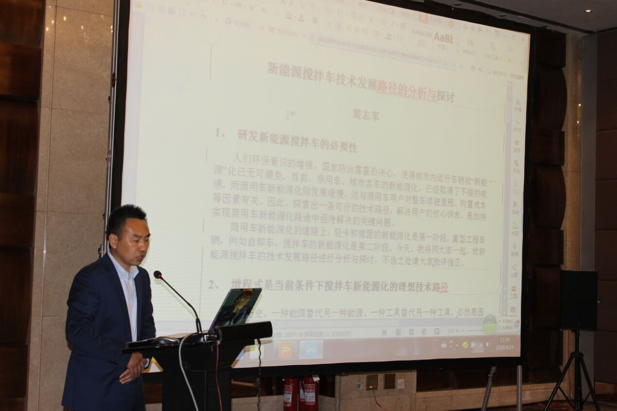 安徽星马专用汽车有限公司总经理助理裴志军先生从国内外搅拌车的发展现状出发,作了“增程式是当前条件下搅拌车新能源化的理想技术路径”和“增程式在搅拌车上应用前景展望”的《新能源搅拌车技术发展路径的分析与探讨》报告。