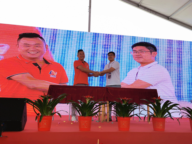 山东八达国际工程机械有限公司于保成副总经理与山东天宇建设机械股份有限公司姜山总裁进行现场签约仪式