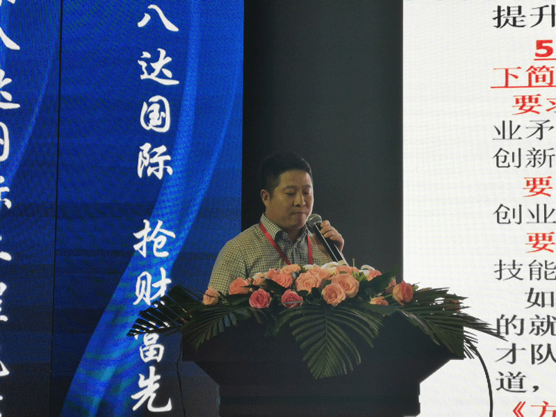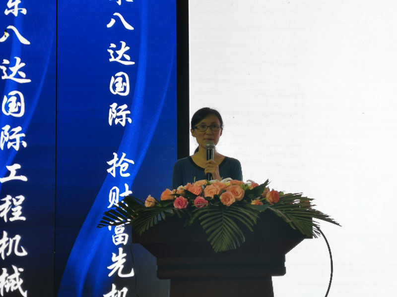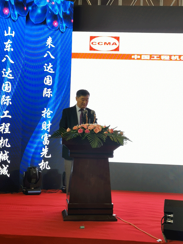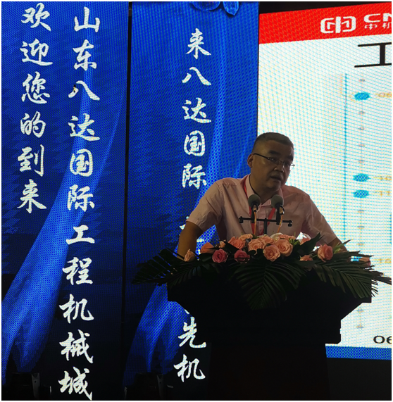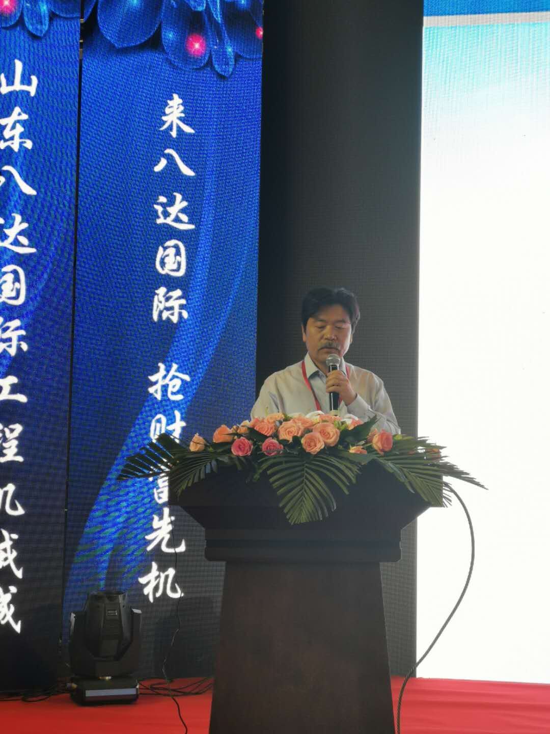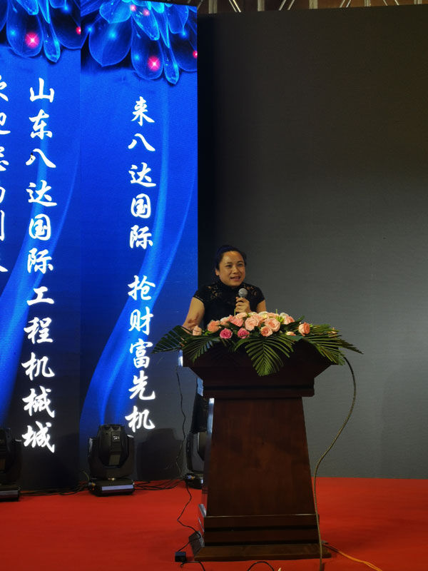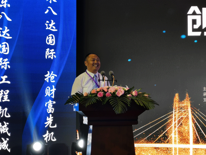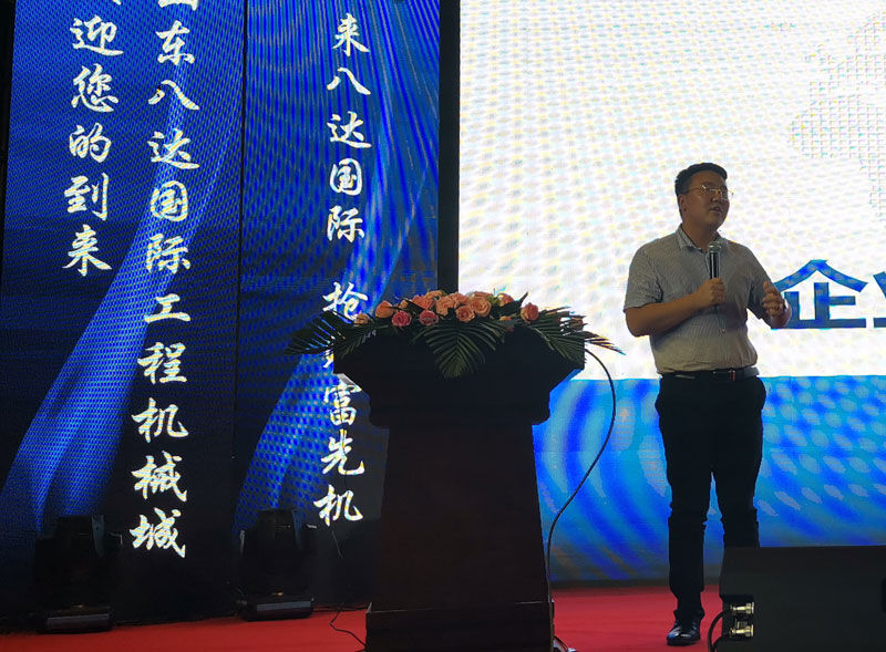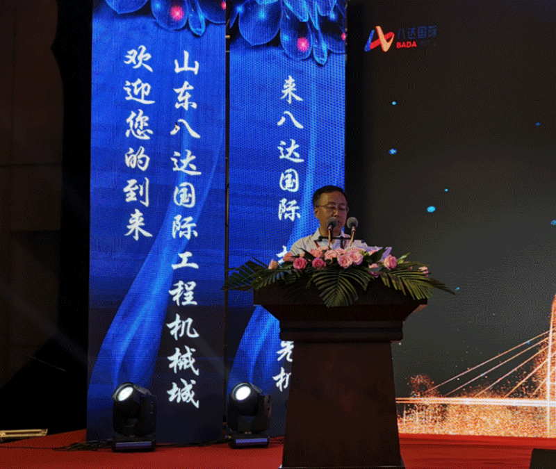山东八达国际工程机械有限公司总经理——于瑞杰致辞。于瑞杰总经理表示山东八达国际工程机械始终秉承“工程建设生生不息,工程机械大有可为”的坚定信念。全力打造国内成交量最大的工程机械城。并通过资源、信息和客户集中,实现货比三家。让客户享受一站式服务得到全方位保障。我们希望通过此次大会,把更多的工程机械和配件结合起来,把更多的买家请进来,通过公平、公正、公开的交易,让成交更快捷、更容易、更方便!