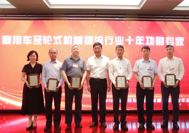 会上对商用车及轮式机械物流行业十年功勋专家和功勋企业进行了颁奖。