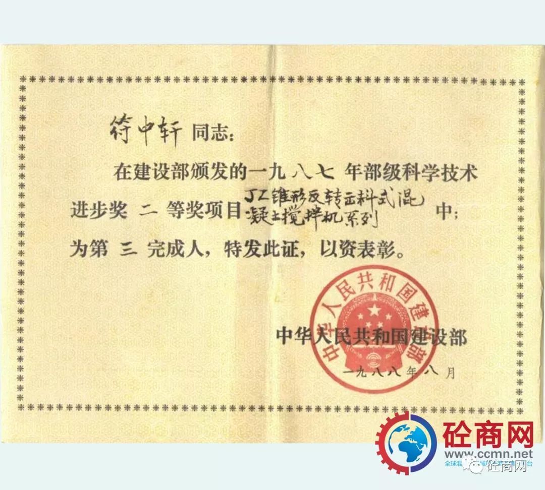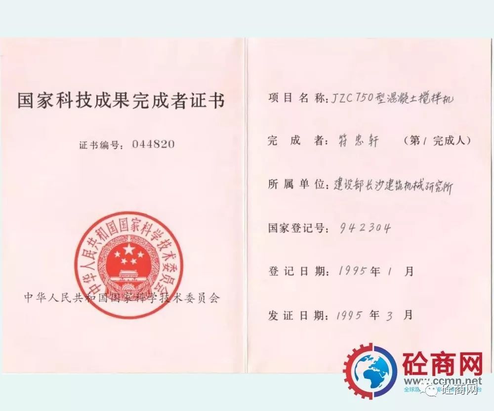 通过全行业的不懈努力,改革统型机型的结构与技术,新型ued网站搅拌机取得了突飞猛进的发展,并在全国推广使用,获得用户广泛的认可与好评。长沙建机院负责的、本人作为主要参与设计者的“JZ锥形反转出料搅拌机系列”获建设部1987年科技进步二等奖;代表长沙建机所与方圆集团合作开发的JZC750ued网站搅拌机,获得国家科技成果证书。