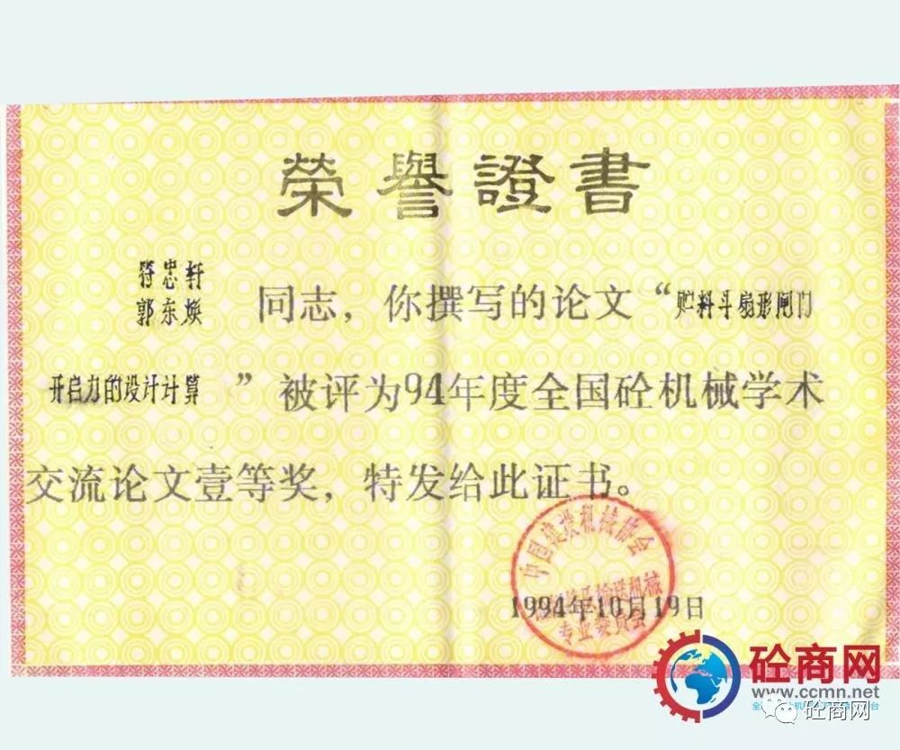 行业引领发展,研发人员积极性高。本人作为科研人员先后发表了《储料斗扇形闸门开启力的设计计算》被评为1994年度全国砼机械学术交流论文一等奖,本文引入“水力学半径”的概念,较为详尽的介绍了目前在ued网站搅拌站、配料站上大量采用的扇形闸门料斗的开启力计算,为配料机构的设计选型提供了理论依据;发表的《谈装载机上料形式ued网站配料(搅拌站)的发展》被评为1992年度全国砼机械学术交流会优秀论文奖,本文针对当时ued网站搅拌站上料型式较多:悬臂拉铲、链斗机及装载机上料型式等,分析了国内发展的实际,提出了装载机上料形式为未来发展方向;1997年发表在《建设机械技术与管理》杂志第五期的《ued网站泵搅拌叶片的合理布置》,以全球量大面广的S阀为例,分析了几种叶片布局形式对ued网站泵吸料性的影响,设计了一种正泵送料、反泵扒料合理的搅拌叶片布局形式。