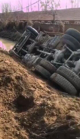 据网友爆料,2019年12月29日下午1时左右,河南省濮阳市濮阳县子岸乡岳辛庄村东头发生了一起侧翻事故。一辆水泥罐车疑似超载导致侧翻到路旁的水沟里面,从图片上可以看出,水泥罐车直接来了个四脚朝天,所幸现场没有人员伤亡,具体原因交通部门正在进一步调查!