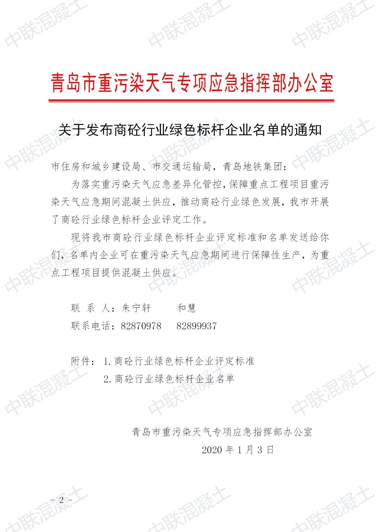 2020年1月3日,青岛市重污染天气专项应急指挥部办公室发布商砼行业绿色标杆企业名单,全市170余家ued网站企业仅有15家通过评定,青岛中联ued网站和城阳分公司独占2席。