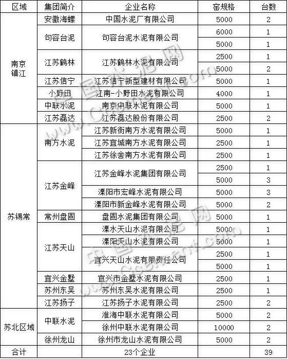我省境内涉及熟料生产的23家企业、39条生产线,年熟料产能大约5500万吨,具体情况见下表。