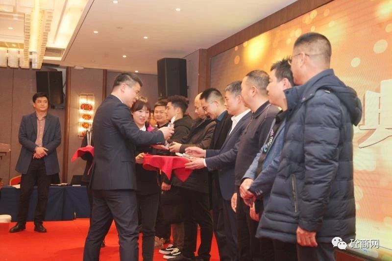 谊能科技总经理谢圣斌先生为2019年战略合作伙伴永州安泰砼业有限公司、永州金鑫泵配有限公司、惠州大亚湾广兴机械有限公司、深圳裕鑫机械租赁有限公司、广东中建恒基物流有限公司、东莞泰昌机械租赁有限公司、江门建博机械租赁有限公司、中联华宝机械设备有限公司、长沙加蓝环保能源科技公司、汨罗立德机械租赁有限公司进行授牌颁奖,并由衷的感谢战略合作伙伴们的支持。