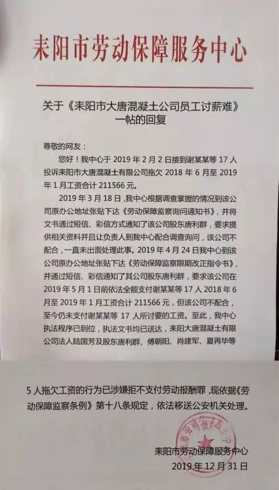 关于“耒阳市大唐ued网站公司员工讨薪难”一贴的回复