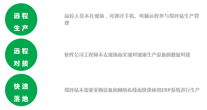 在前两代基于搅拌站现场服务器的ERP管理系统的基础上,首次实现搅拌站与搅拌站、搅拌站和工地、搅拌站和供应商,以及搅拌站企业和搅拌站设备之间的信息互联互通。