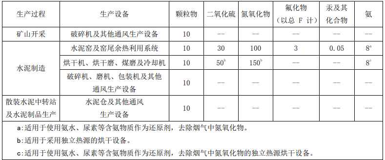 河北省出台的《水泥工业大气污染物超低排放标准》,严格了颗粒物、二氧化硫、氮氧化物的排放限值,分别为10mg/m3、30mg/m3、100mg/m3;对烘干机、烘干磨、煤磨及冷却机系统的颗粒物、二氧化硫、氮氧化物排放限值分别确定为10mg/m3、50mg/m3、150mg/m3。与现行国家标准以及其他省份标准相比,达到了先进水平。对烘干机、烘干磨、煤磨及冷却机系统,在排放限值基础上增加了脱硝系统氨逃逸控制指标,排放限值为8mg/m3。