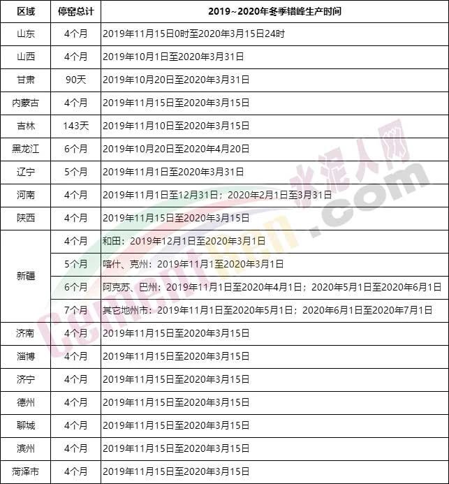 回顾2019年水泥企业错峰生产时间如下:
