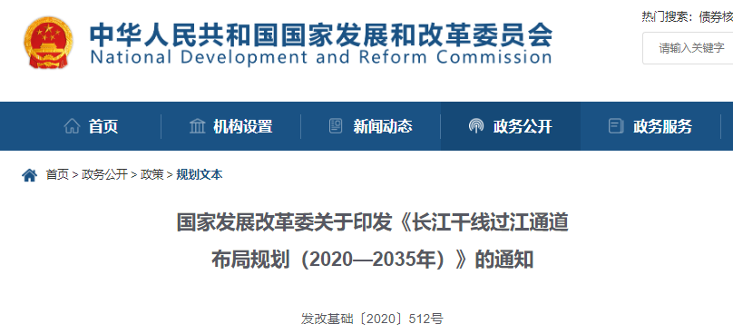 《长江干线过江通道布局规划(2020—2035年)》(以下简称《规划》)业经国务院批准,现印发给你们,请按照执行,并就有关事项通知如下: