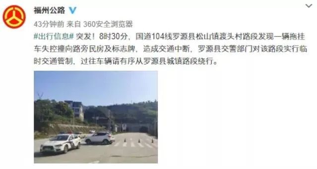 事故发生后,罗源县交警部门,对该路段实行临时交通管制。