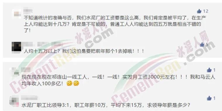 但是,仍有很多水泥企业员工给水泥人网留言称,自己根本没有涨工资,甚至还有被拖欠工资的情况,并且直呼收入被“平均化”了。
