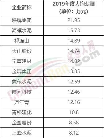 摘要:近日各大水泥集团发布年报显示,水泥厂员工工资得到普遍上涨,塔牌集团人均工资增幅最大,从15.4万元跃升至21.9万元。海螺水泥、祁连山两家企业紧随其后,人均工资涨至15.7万元、14.8万元。