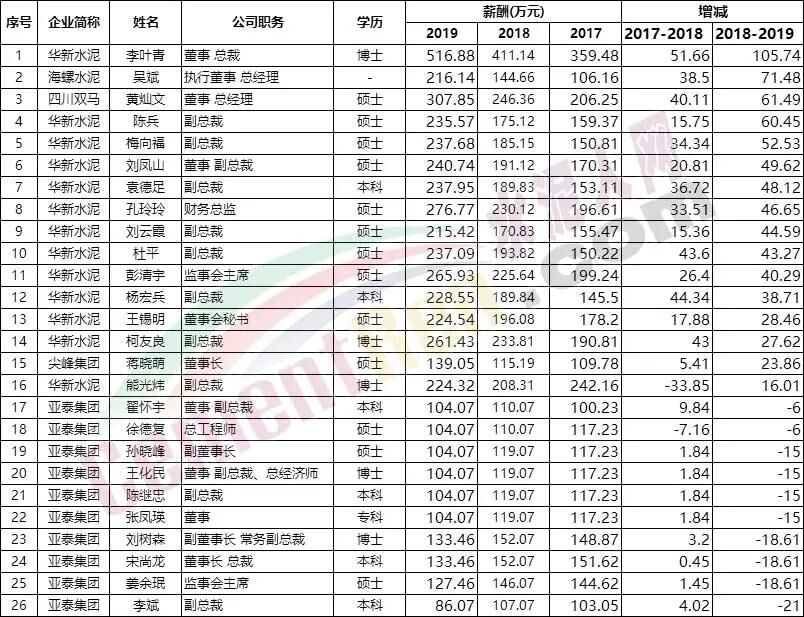 从上述数据可见,无论是员工年薪还是高管年薪,水泥行业较钢铁行业普遍较低。