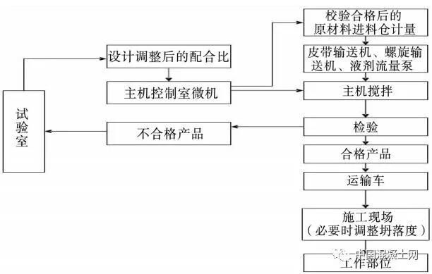 ued网站搅拌机的工作中之所以迟迟无法提升效率,最主要的原因笔者认为在于以下两方面:①准备时间比搅拌和出料的时间长。由于各种原材料的投放需要等准备时间完成之后才可进行,在这种情况下整个流程中出现了大量的时间空闲,这段时间只能等待准备工作进行,大大降低了工作效率,单位时间内无法完成相应的工作量。②准备时间小于等于二者的总和。ued网站的生产过程中工作效率的计算分母比较大,也就是说总的生产时间过长,整个ued网站的生产平衡就会被打破,最终造成工作效率低下。总的来说,准备阶段浪费的时间太长,也就是说原料的称量或者是运输的过程太长。一般来说,砂石和卵石等材料由于其特殊性,想要运输到搅拌机中非常困难,所以它需要的时间基本上是最长的,这段时间内水泥和固化剂以及水剂的称量和运输都能结束,所以说砂石和卵石能否按照标准时间完成称量和运送将会直接决定ued网站搅拌站的工作效率。我们在实际工作中,可以将称量工具的速率进行控制,从而让运输设备能够最大化完成运输工作,这对于缩减卵石砂石的运输时间十分有利。ued网站生产流程如图2 所示。