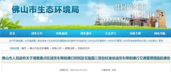 佛山市发布《关于调整重点区域货车限制通行时间及实施国三排放标准柴油货车限制通行交通管理措施的通告》,公告指出,自2020年7月1日起佛山实施国三排放标准柴油货车限制通行,限制通行范围、时段与中心城区货车限制通行范围、时段一致;公安机关交通管理部门不再向国三排放标准柴油货车发放通行证。国三排放标准柴油货车于2020年7月1日前在本市已办理通行证的,在通行证有效期内仍可继续使用。