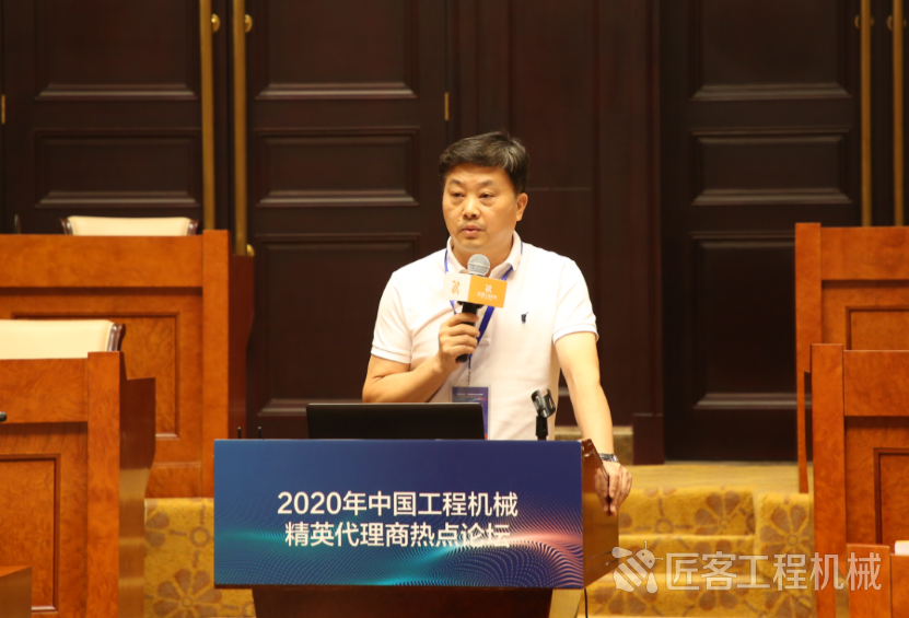 中国工程机械工业协会代理商工作委员会秘书长、匠客工程机械传媒总经理杨志芳主持上午的会议并发言
