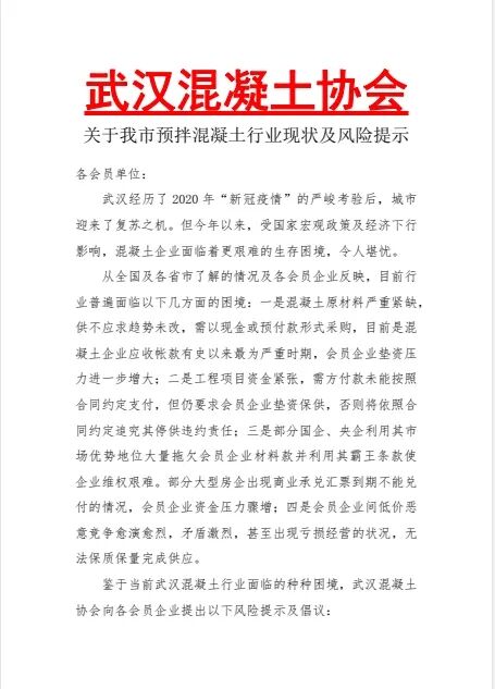 日前,武汉ued网站协会发布《武汉市预拌ued网站行业现状及风险提示》 称,武汉经历了 2020 年“新冠疫情”的产峻考验后,城市迎来了复苏之机。但今年以来,受经济下行影响,ued网站企业面临着更艰难的生存困境。