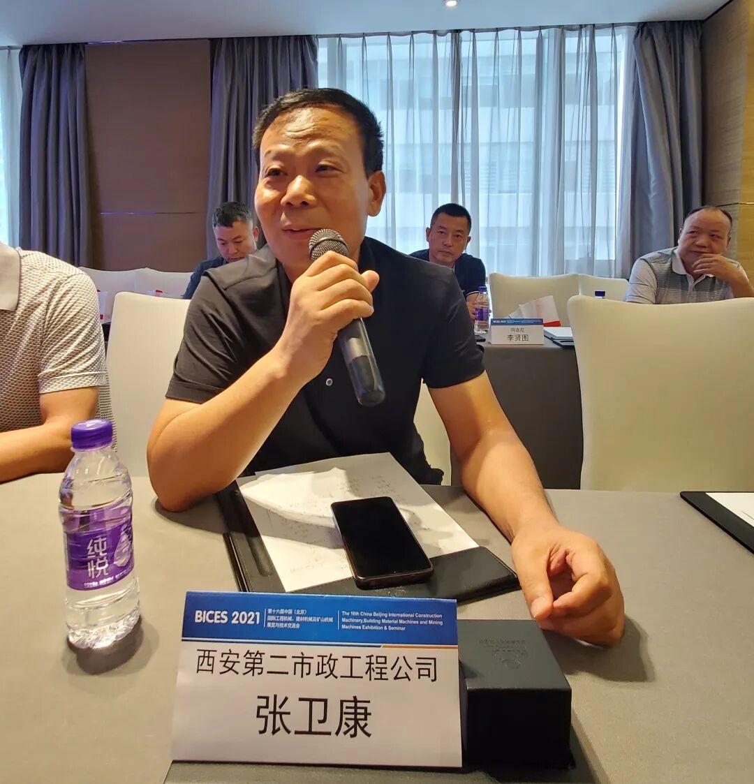 西安市第二市政工程公司机械化分公司经理张卫康在座谈交流中发言