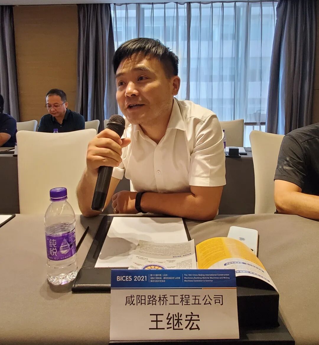 陕西省咸阳路桥工程公司五公司总经理王继宏在座谈交流中发言